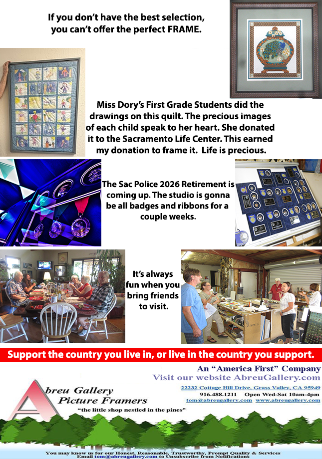 Tom’s been framing law enforcement awards and displays for decades. He’s well known as the Peace Officer Framer.